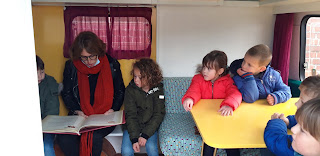 Er werd voorgelezen in de leeshoek van juf Marijke en meester Niels maar ook in de caravan.